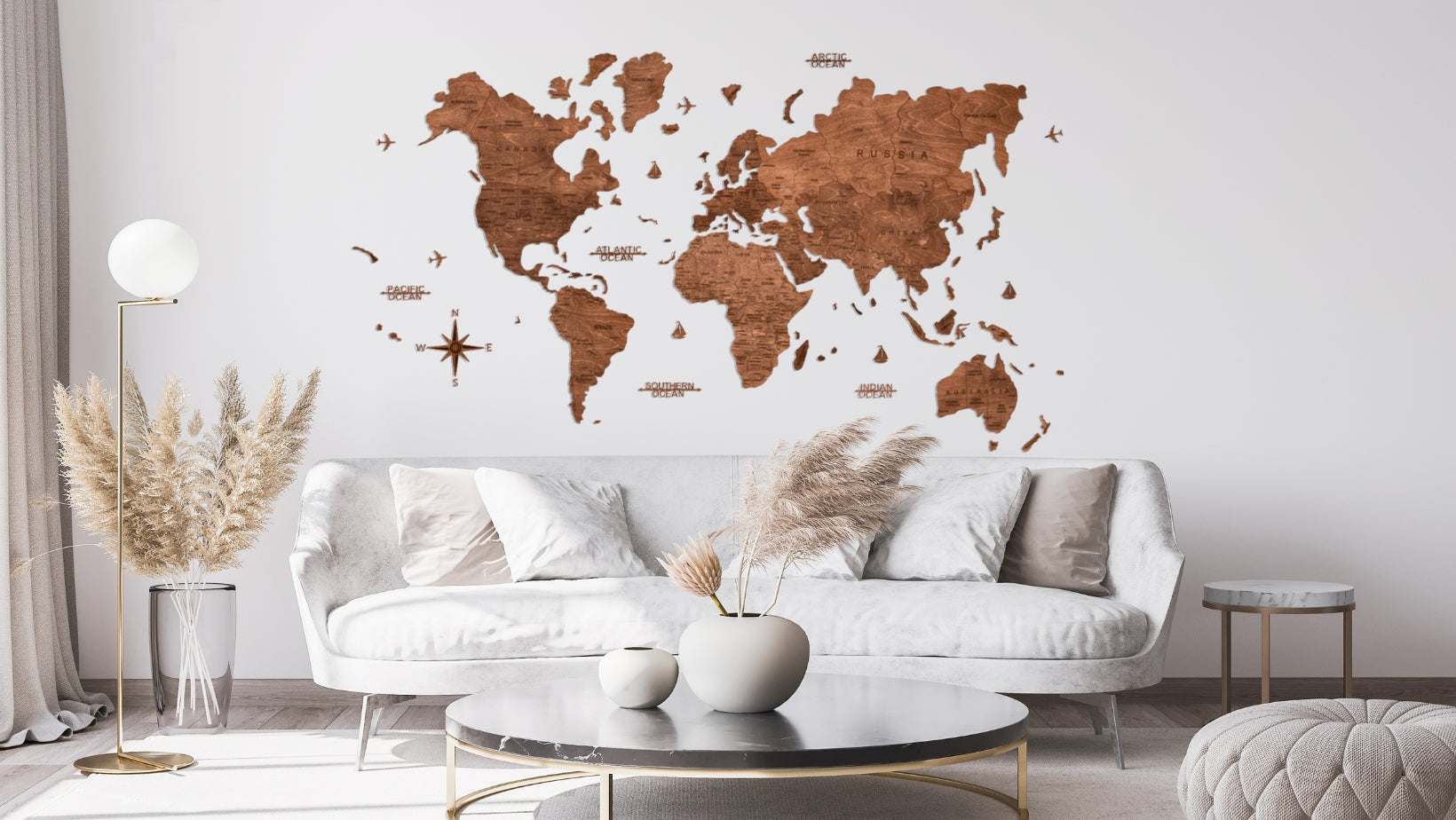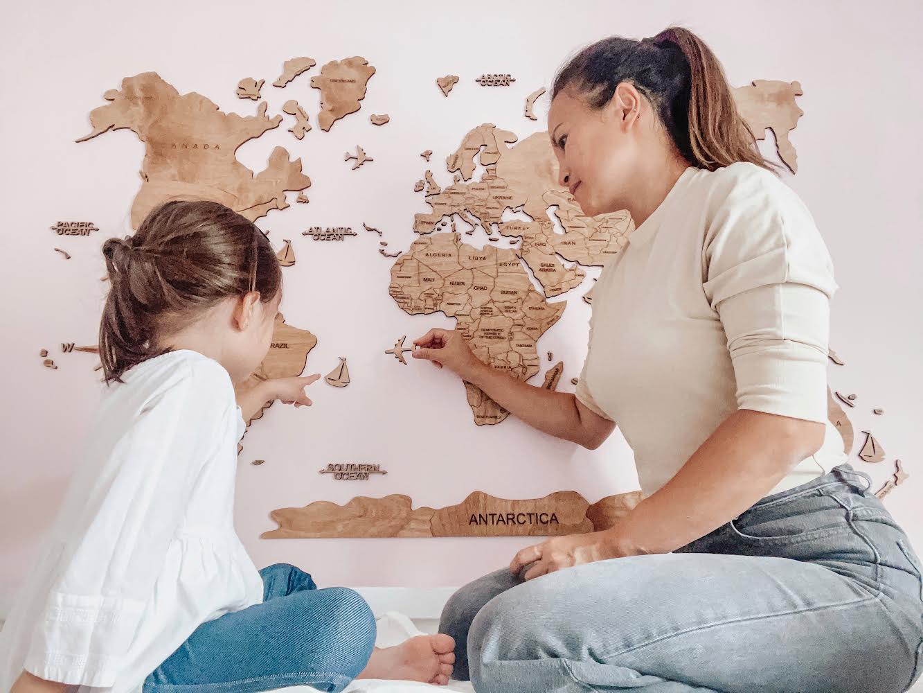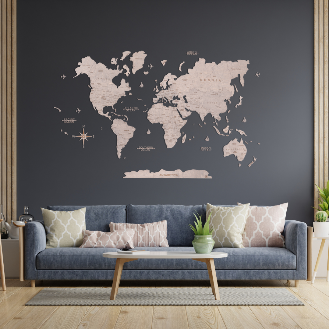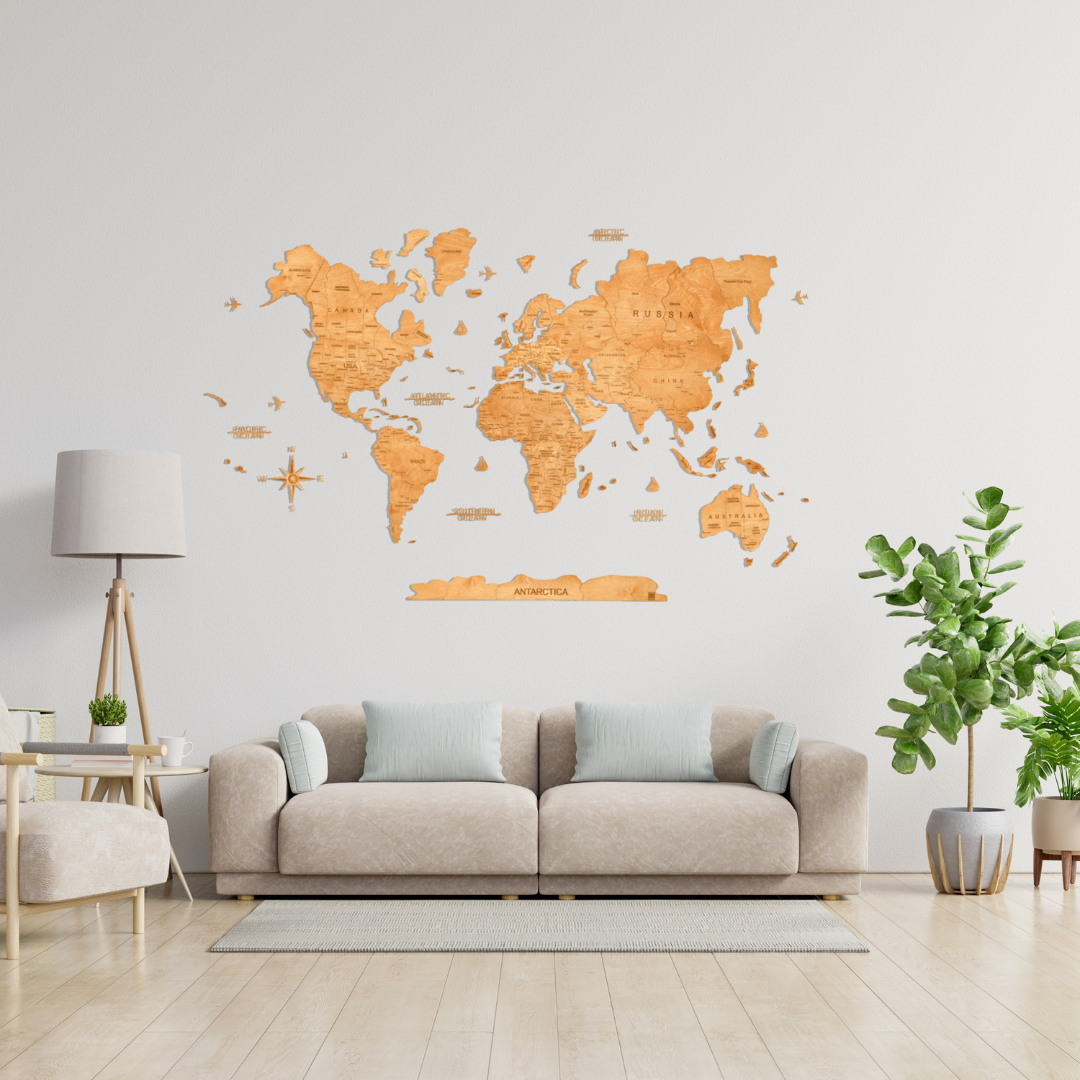 Handmade wooden world map with precision-cut details — a statement décor piece you’ll want to look at every day.